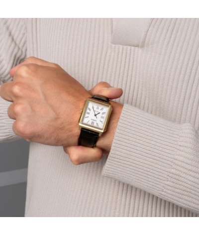 Su caja y correa de acero inoxidable con recubrimiento dorado proporcionan durabilidad y un aspecto refinado, mientras que el cristal mineral resistente a arañazos protege el dial de manera efectiva. Equipado con movimiento de cuarzo japonés, garantiza una medición del tiempo exacta y fiable en cualquier situación.