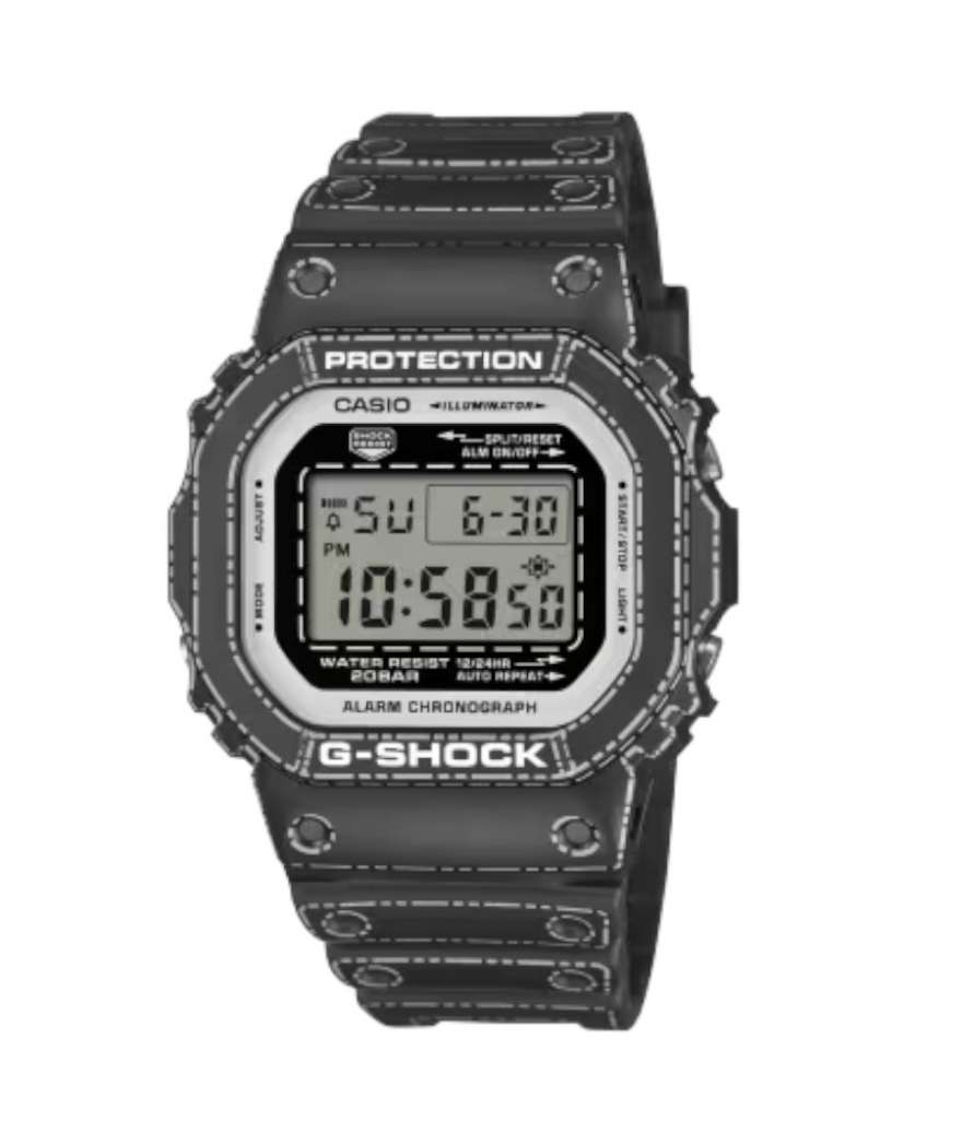 Como miembro de la familia G-Shock, este modelo está diseñado para soportar golpes y vibraciones gracias a su estructura de resina protectora. Mantiene la robustez característica de la serie 5600, reconocida por su durabilidad y fiabilidad en condiciones exigentes.