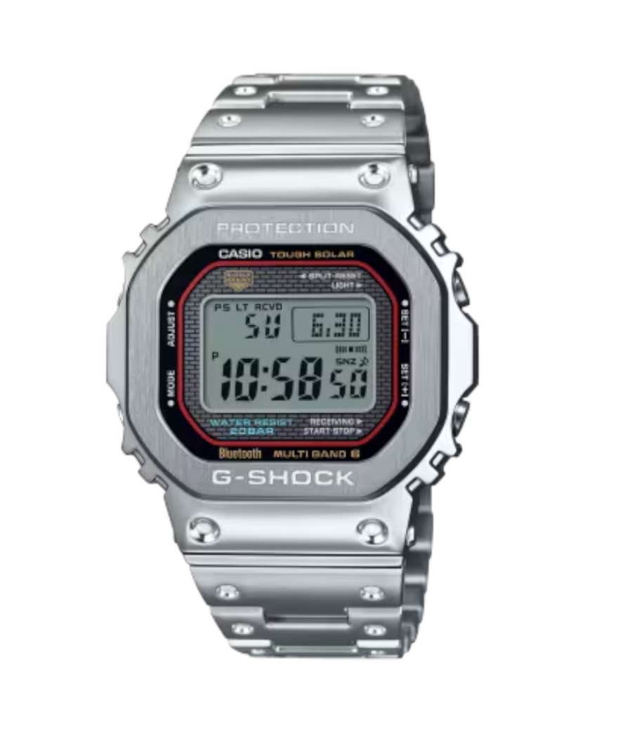 El GMW-B5000D-1CER presenta una estructura totalmente metálica en acero inoxidable, que refuerza la rigidez del reloj sin perder la ligereza característica de los G-Shock.