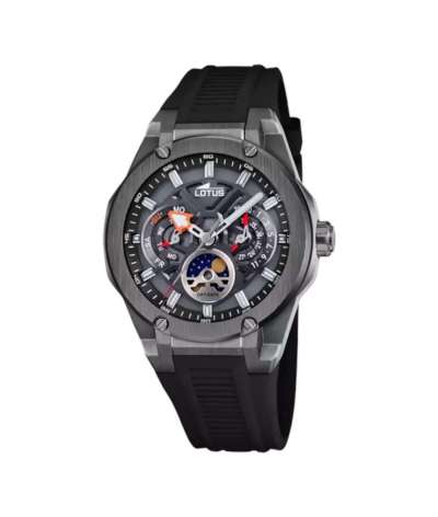 Reloj Lotus Vortex 18946/6 para hombre, multifunción con diseño deportivo moderno, movimiento de cuarzo, esfera negra y correa de caucho resistente. Perfecto como reloj diario con fase lunar y calendario, además de resistencia al agua 10 ATM